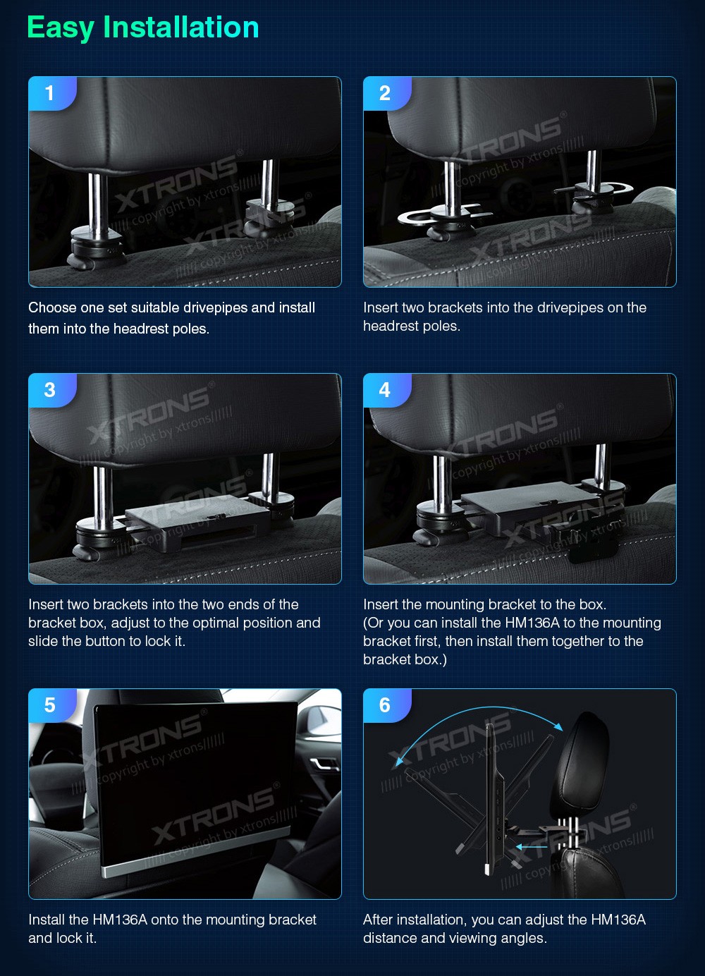 XTRONS HM136A 13.3" Puuteekraaniga peatoemonitoor, HDMI, Android 11.0Tarkvara: Android 11.013.3" HD puuteekraan 1920*1080px, IPSProtsessor Rockchip RK3566  Cortex-A55 Quad-Core 64bit @1.8GHzMuutmälu 2GB, 32GB sisemäluWIFI sisseehitatud (2.4GHz ja 5.0GHz)HDMI sisend / väljundRCA Audio sisend - J ...