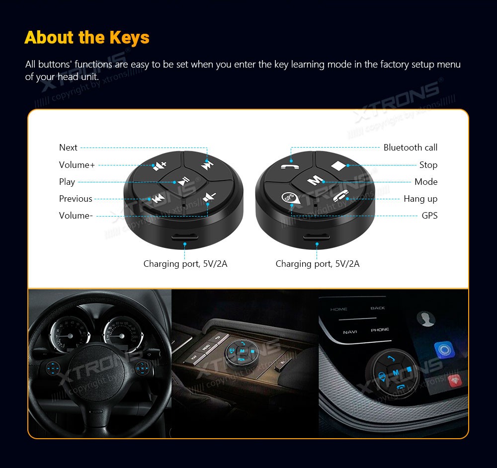 XTRONS SWC02 Roolijuhtimise adapterUniversal Wireless Rechargeable Steering Wheel Controller for Car DVD GPS Stereo ...