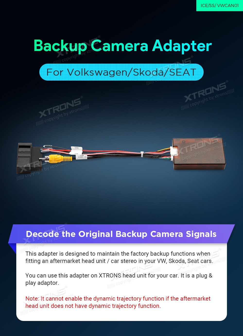 XTRONS VWCAN01 originaal tagurduskaamera adapter Volkswagen, Skoda, SEAT ...Saadaval olevate toodete tarneaeg on 2-4 tööpäeva pärast kliendi tellimuse tasumist (raha laekumist Akustika.EE OÜ pangakontole). Kui tellitud kaup pole pärast tellimuse esitamist saadaval või on ette näha viivitust tarneajas, võtame Teiega ühe tööpäeva jooksul ühendust.