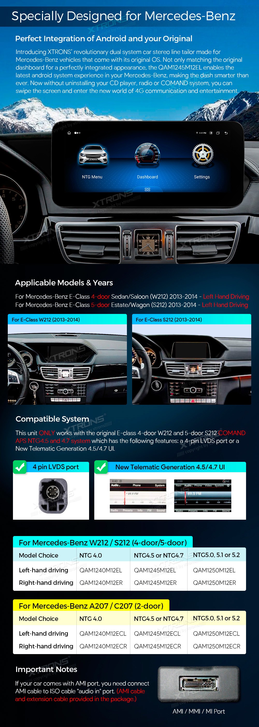 XTRONS QAM1245M12EL 10.25" Mercedes-Benz E-Class W212, S212 Multimeedia Android 13.0 Octa-Core