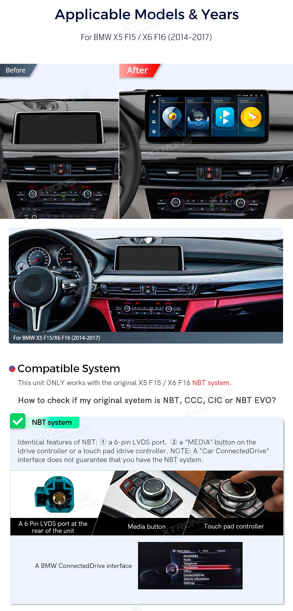XTRONS QLB22NB12X5N 12.3" BMW X5 F15, X6 F16 NBT Multimeedia Android 13.0 Octa-Core