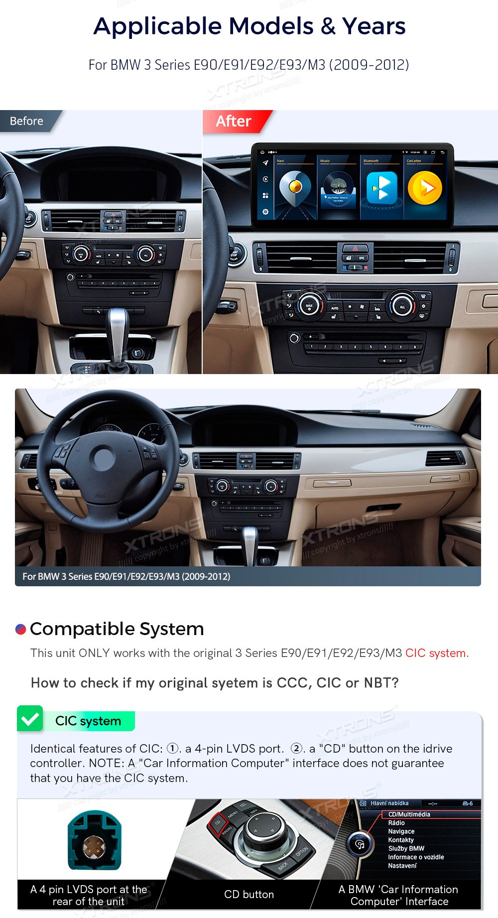 XTRONS QLB22CIB12E92 12.3" BMW 3 E90, E91, E92, E93, M3 CIC Multimeedia Android 13.0 Octa-Core BMW 3 Series E90, E91, E92, E93, M3 (2009-2012) (Sobib, kui sõidukil on CIC süsteem.)Tarkvara: Android 13.012.3" HD puuteekraan 1920*720px, IPS HDProtsessor Octa-Core 2xCortex-A75 2.0GHz + 6xCortex-A5 ...