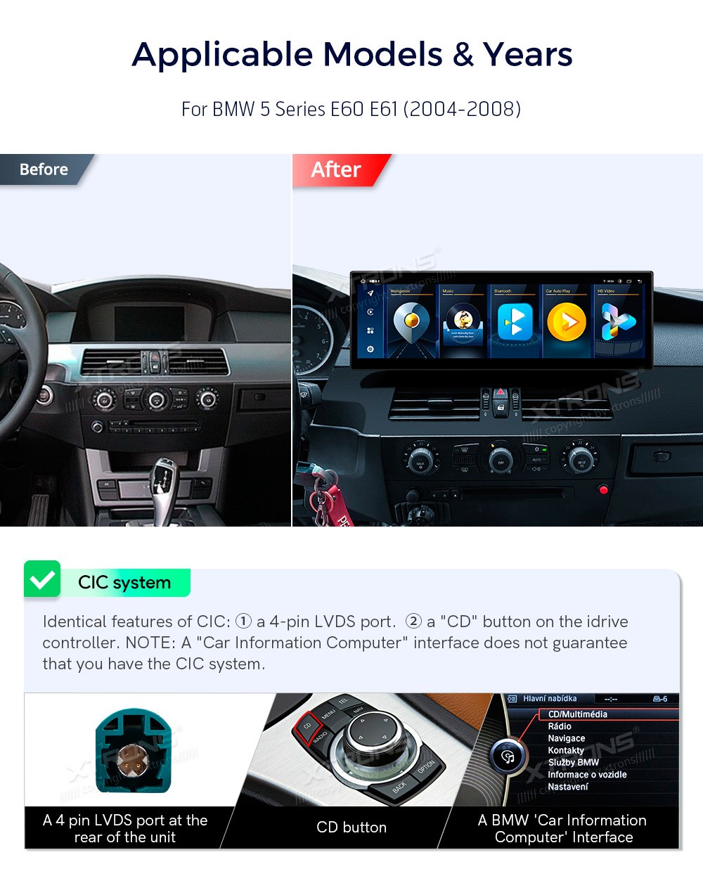 XTRONS QLB4260CI 14.9" BMW 5 E60, E61, CIC Multimeedia Android 13.0 Octa-Core 4G BMW 5 Series E60 E61 (2004-2008) (Sobib, kui sõidukil on CIC süsteem.)Tarkvara: Android 13.014.9" HD puuteekraan 2560*720px, IPS HDProtsessor Octa-Core 2xCortex-A75 2.0GHz + 6xCortex-A55 1.7GHz 64bitMuutmälu DDR4 4 ...