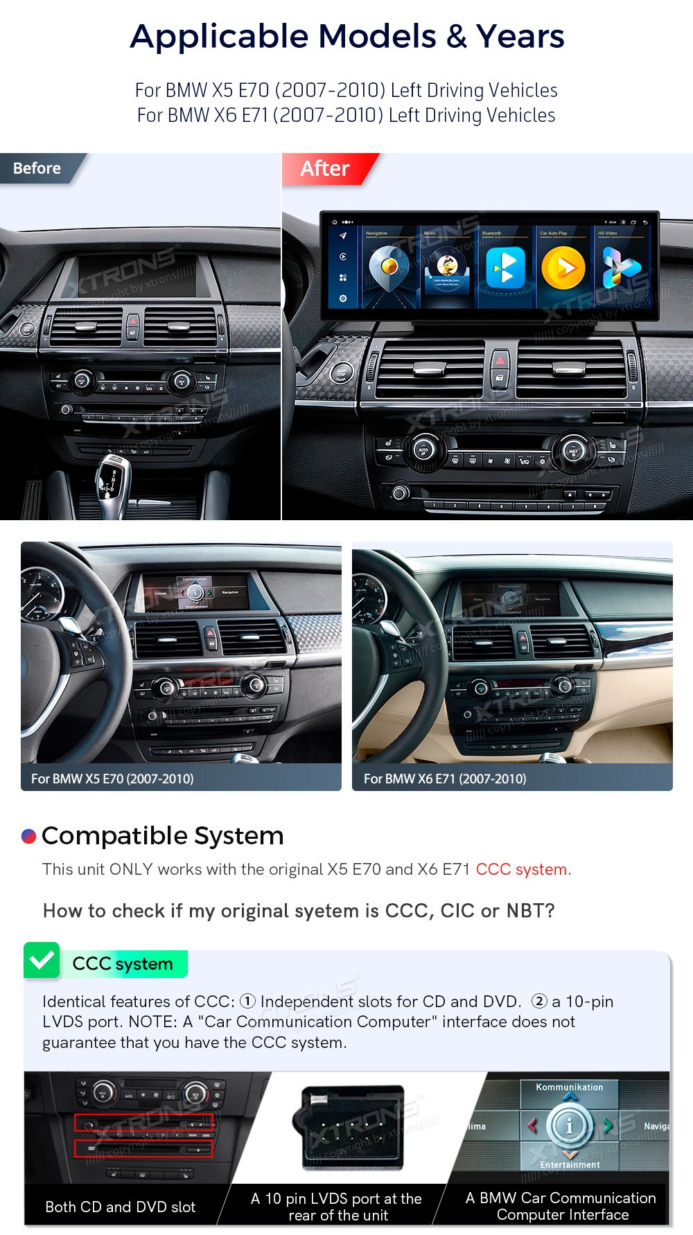 XTRONS QLB42X5CCL 14.9" BMW X5 E70, X6 E71, CCC Multimeedia Android 13.0 Octa-Core 4G BMW X5 E70 (2007-2010)BMW X6 E71 (2007-2010)(Sobib, kui sõidukil on CCC süsteem.)Tarkvara: Android 13.014.9" HD puuteekraan 2560*720px, IPS HDProtsessor Octa-Core 2xCortex-A75 2.0GHz + 6xCortex-A55 1.7GHz 64bi ...