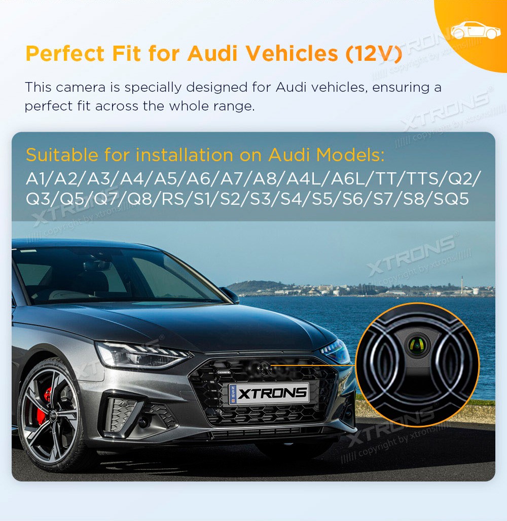 XTRONS ACCAMADF01 AUDI AHD KaameraVaatenurk: 170ºVideo režiim: PALFormaat: 1280*720pxTööpinge: +12VVideo väljundAudio väljund: EiTöötemperatuur: -30ºC~+75ºCVeekindlus: IP67 ...