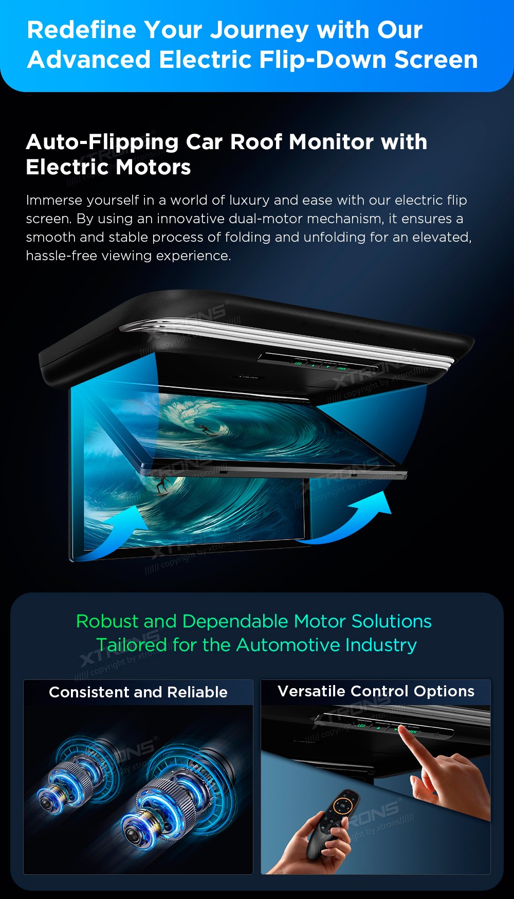 XTRONS CM152AM 15.6" Elektrimootoriga Laemonitor Android WIFI Ekraan 15.6" FHD ( 1920*1080px ), IPSToetatud signaalid: PAL/NTSC/AUTOTarkvara: AndroidProtsessor Octa-Core Cortex-A55 @2.0GHzMuutmälu DDR4 2GB, LPDDR4 32GB sisemäluWIFI modem sisseehitatud (2.4GHz ja 5.0GHz)Bluetooth 5.0 (Tänu sisseehita ...