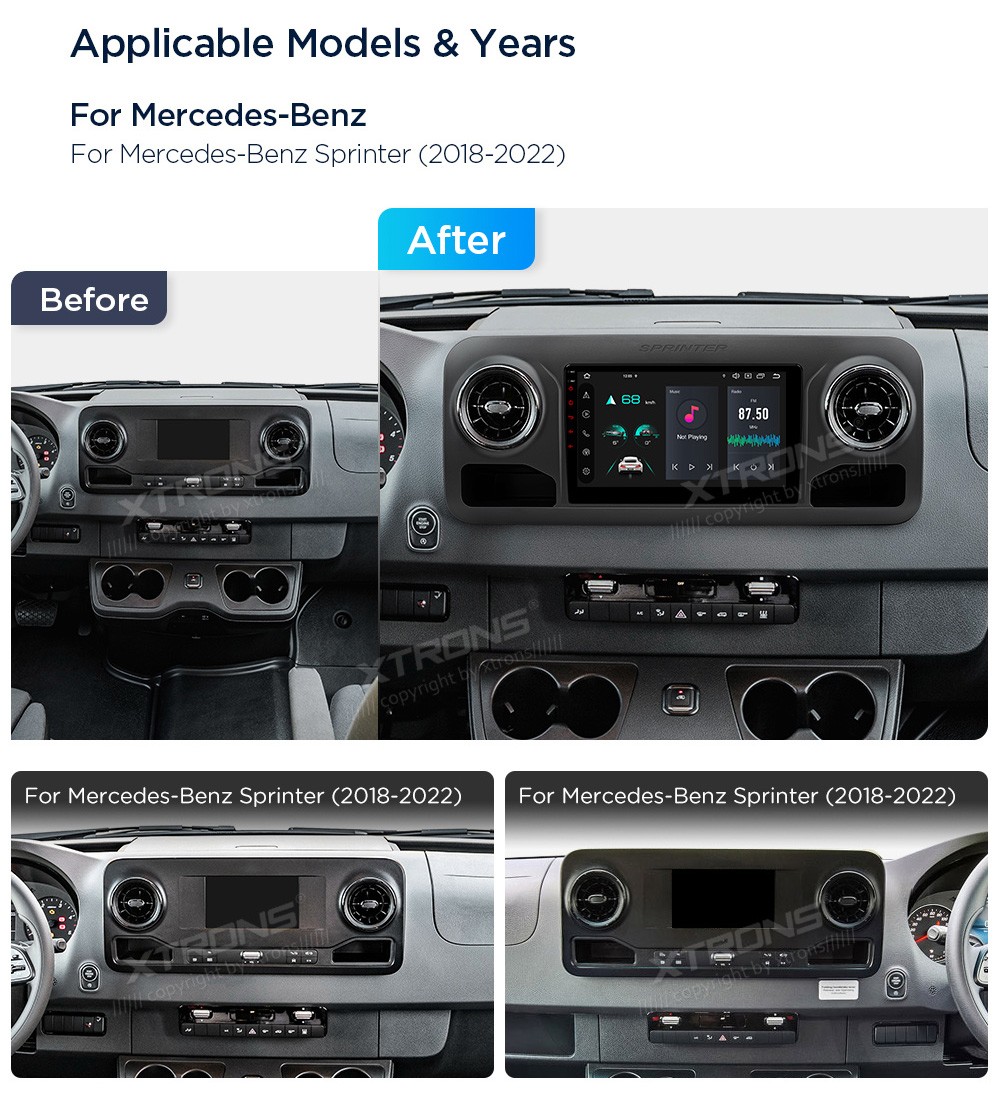 XTRONS PXP14MSPGDAB 10.1" Mercedes-Benz Sprinter Multimeedia Android 14.0 Octa-Core 4G Mercedes-Benz Viano Sprinter (2018-2022)Tarkvara: Android 14.010.1" HD puuteekraan 1280*720px, G+GProtsessor Octa-Core 2.2GHz 64bitMuutmälu DDR4 4GB, eMMC 5.1 64GB sisemäluGPS NavigatsioonCAR AutoPlay (Blueto ...Lisaseadmed