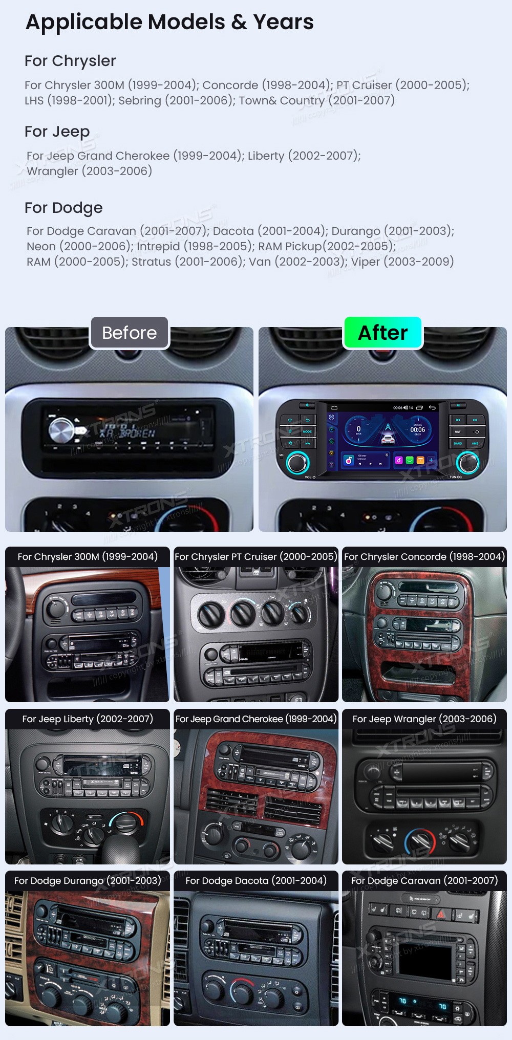 XTRONS IDS50WRJL 5.0" Chrysler / Jeep / Dodge Multimeedia Android Octa-Core Chrysler 300M (1999-2004), Concorde (1998-2004), LHS (1998-2001), PT Cruiser (2000-2005), LHS (1998-2001), Sebring (2001-2006), Town&Country (2001-2007)Jeep Grand Cherokee (1999-2004), Liberty (2002-2007), Wr ...Lisaseadmed