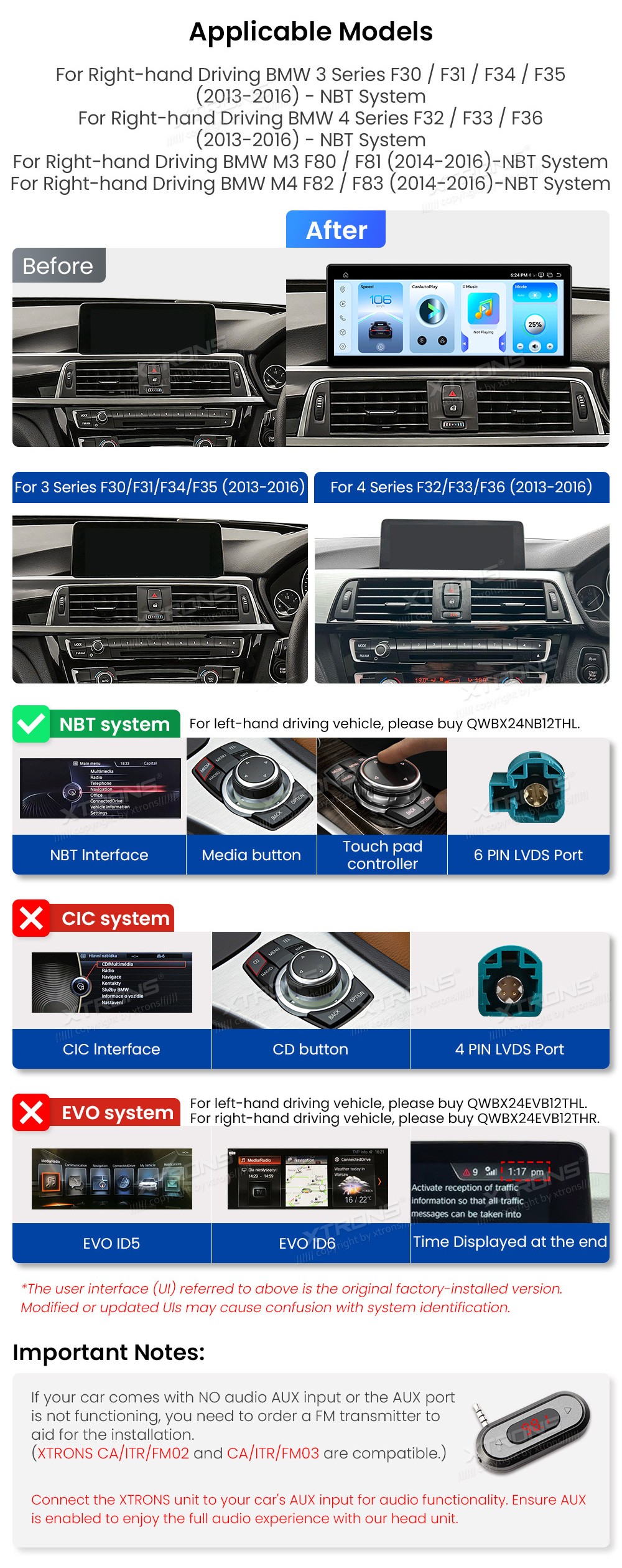 XTRONS QWBX24NB12THR 12.3" BMW 3, 4 Seeria M3, M4 NBT Multimeedia Android 14 Octa-Core 4G BMW 3 Series F30, F31, F34 (2013-2016)BMW 4 Series F32, F33, F36 (2013-2016)BMW M3 F80, F81 (2014-2016)BMW M4 F82, F83 (2014-2016)(Sobib, kui sõidukil on NBT süsteem.)Tarkvara: Android 1412.3" HD puuteekraan 24 ...Lisaseadmed
