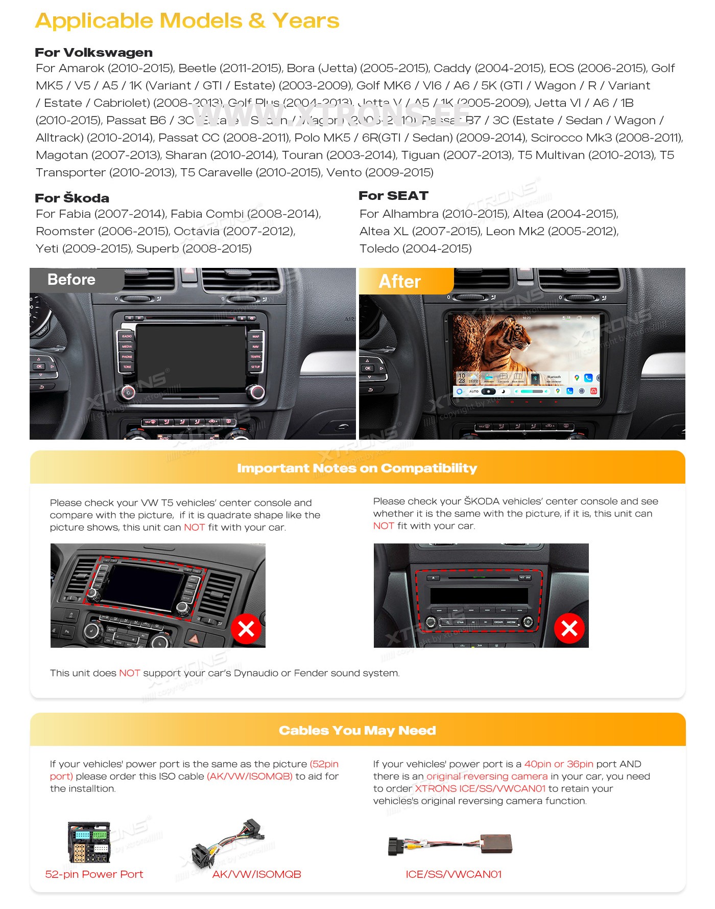 XTRONS IMH94MTVL 9.0" VOLKSWAGEN, SEAT, SKODA Multimeedia Android 14.0 Octa-Core 4G VolkswagenAmarok (2010-2015), Beetle (2011-2015), Bora (Jetta)(2005-2015), Caddy (2004-2015), EOS (2006-2015), Golf MK5/V5/A5/1K(Variant/GTI/Estate)(2003-2009), Golf MK6/VI6/A6/5K(GTI/Wagon/R/Variant/Estate/Cab ...Lisaseadmed