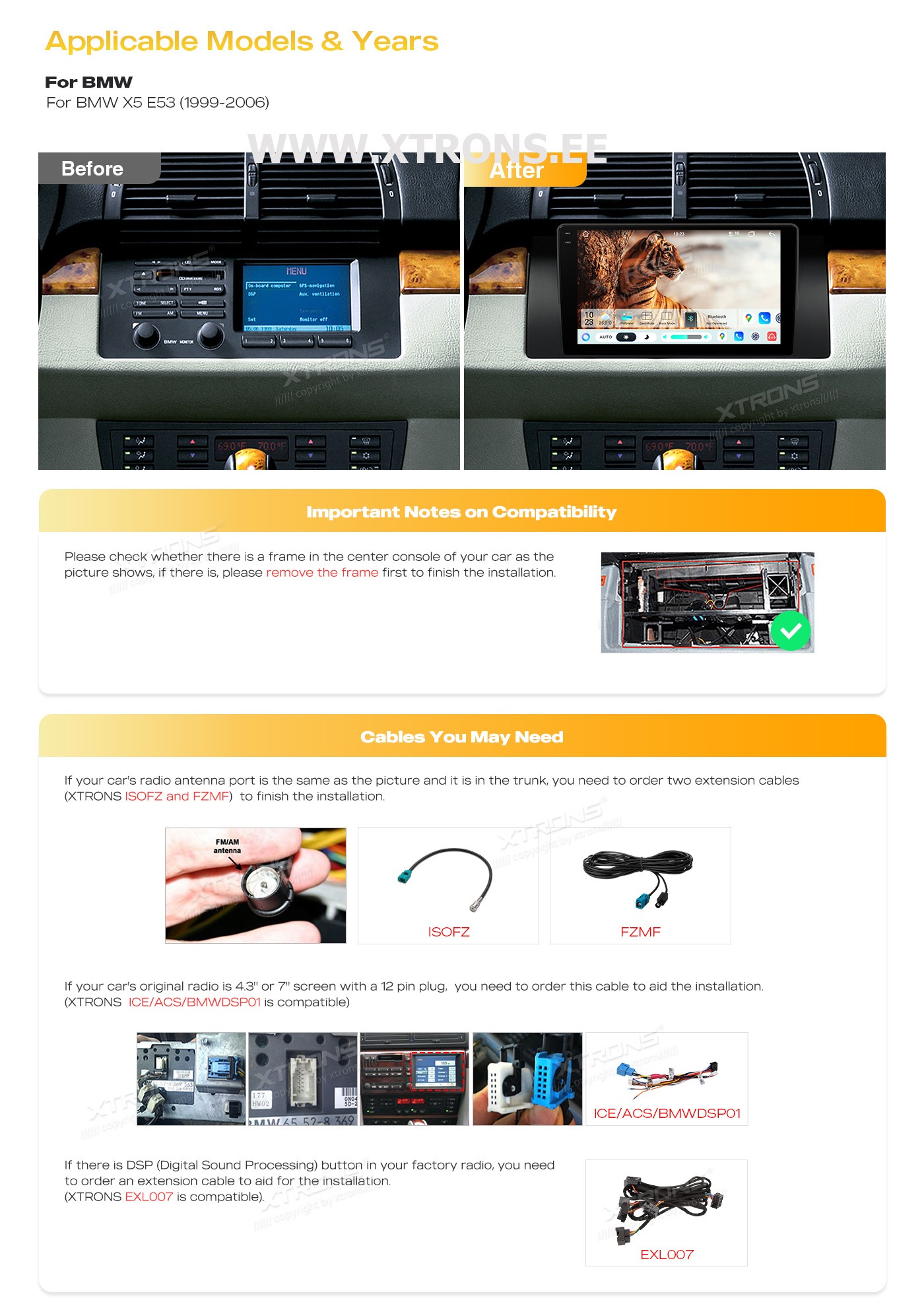 XTRONS IMHP9453B 9.0" BMW X5 E53 Multimeedia Android 14 Octa-Core 4G 9-tolline UNISOC 7865 kahe Bluetooth QLED ekraaniga 8+128GB globaalne 4G AKM DSP Android autostereo navigatsioonisüsteem BMW X5 E53 (1999-2006) mudeliteleErifunktsioonidXTRONS Premium seeria: Beast kiip. Nutikas disain. Professiona ...