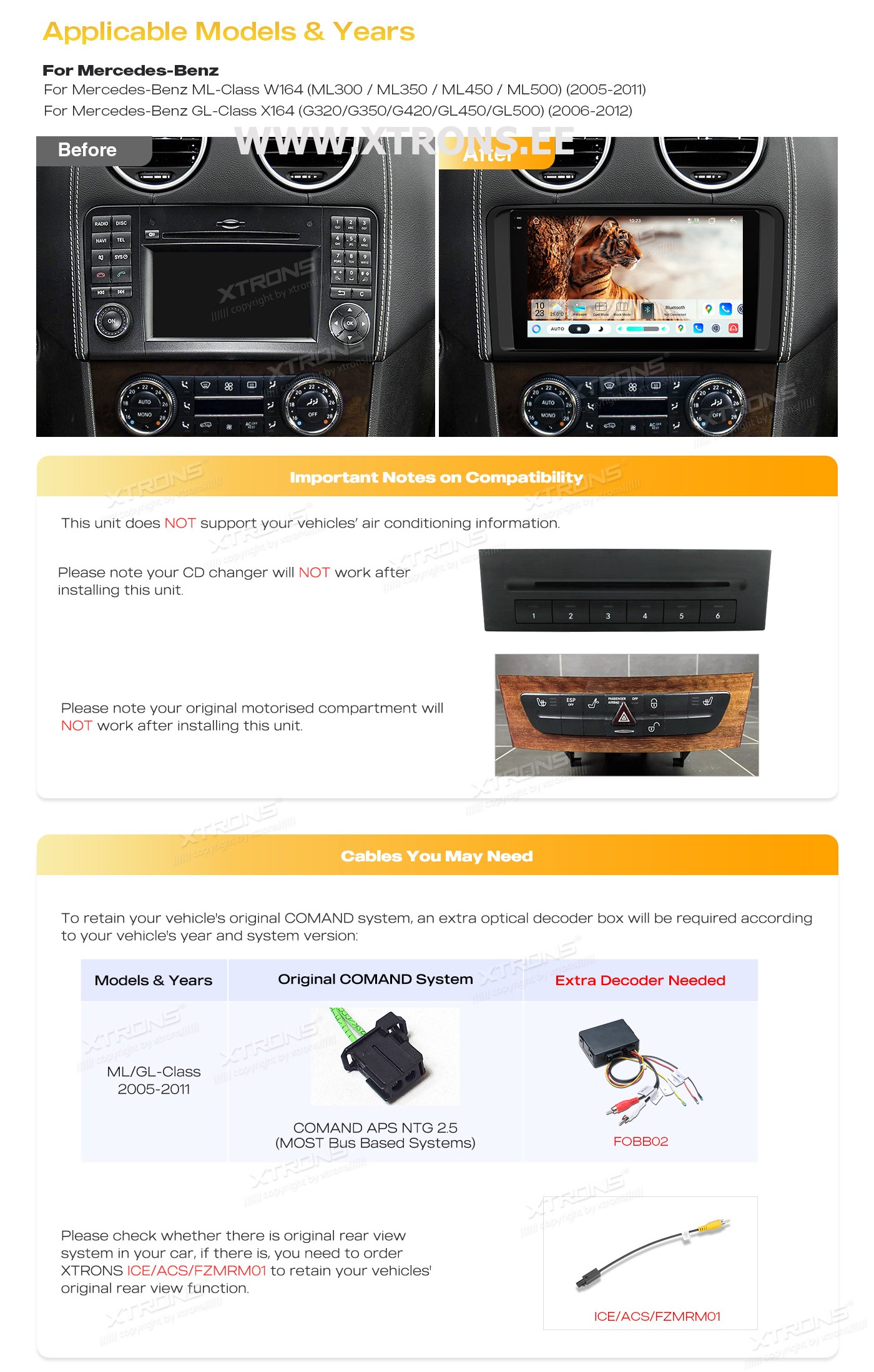 XTRONS FOBB02 Mercedes-Benz ML, GL, R fiiberoptiline adapterPlug-and-Play adapter, mis töötab COMAND APS NTG (Most Bus Based Systems) 2 või COMAND APS NTG 2.5 süsteemiga *Ei tööta, kui autos on D2B Optical Bus System (COMAND 2.0 & COMAND 2.5)...