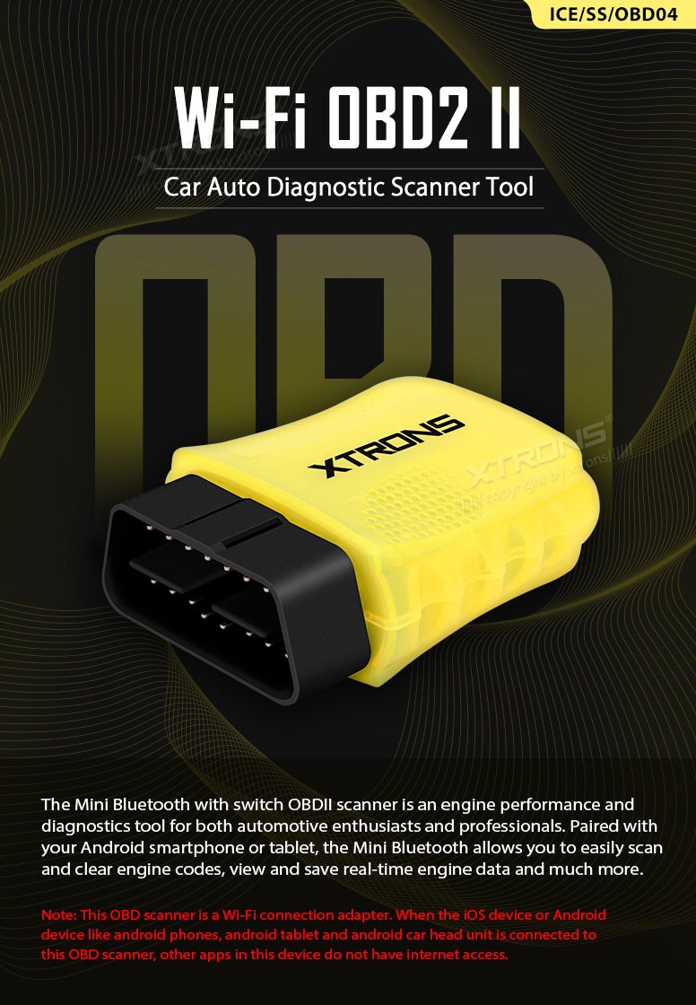 XTRONS OBD04 - Wi-Fi OBD2 II Car Auto Diagnostic Scanner Tool*Compatible with XTRONS Android head units and iOS & Android Devices*Diagnose and Monitor*Universal Vehicle Compatibility*Better Connection Compatibility*Various Apps Available ...Saadaval olevate toodete tarneaeg on 2-4 tööpäeva pärast kliendi tellimuse tasumist (raha laekumist Akustika.EE OÜ pangakontole). Kui tellitud kaup pole pärast tellimuse esitamist saadaval või on ette näha viivitust tarneajas, võtame Teiega ühe tööpäeva jooksul ühendust.