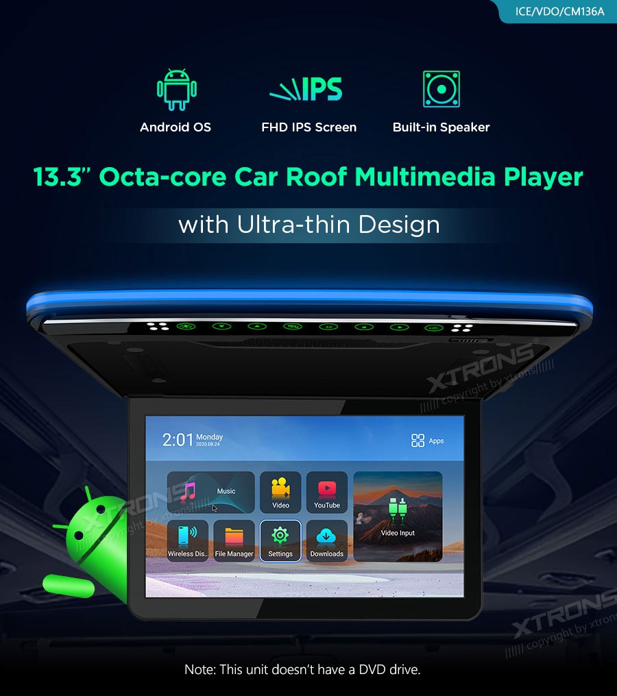 XTRONS CM136A 13.3" Laemonitor Full HD ekraaniga Android 9.0 WIFIEkraan 13.3" Full HD ( 1920*1080px ), 16:9 / 4:3, IPSToetatud signaalid: PAL ja NTSCTarkvara: Android 9.0Protsessor Octa-Core Cortex-A55 @2.0GHzMuutmälu 2GB, 16GB sisemäluWIFI & 3G & 4G (4G jaoks vajalik XTRONS 4GDONG001)Bluetooth 5.0 ...